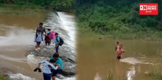 સાગબારાના નવાગામ(ખડકુની)માં શાળા ના હોવાથી ખામપાડા ગામે જીવના જોખમે ભણવા નદી...