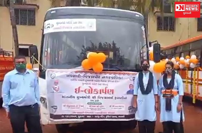 નવસારી: સ્વર્ણિમ જયંતિ મુખ્યમંત્રી શહેરી વિકાસ યોજના અંતર્ગત નવસારી-વિજલપોર નગરપાલિકા વિસ્તારમા મુખ્યમંત્રી શહેરી બસ પરિવહન સુવિધા અંતર્ગત શહેરી બસ સેવાની ઈ-લોકાર્પણ ગુજરાત રાજયના મુખ્યમંત્રી વિજયભાઇ રૂપાણીના હસ્તે વિડીયો કોન્ફરન્સના માધ્યમથી કરવામાં આવ્યું છે.