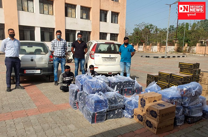 જીલ્લામાં પ્રોહિબિશન તેમજ જુગારની પ્રવૃત્તિ સદંતર નેસ્તનાબૂદ કરવા પોલિસ અધિક્ષક શ્રી ઋષિકેશ ઉપાધ્યાય નાયબ પોલીસ અધિક્ષક આર. ડી. ફળદુ નવસારી વિભાગ દ્વારા નવસારી LCB પોલીસ ઇન્સ્પેકટર વી. એસ. પલાશનાઓને જરૂરી સુચના આપવામાં આવી હતી જેને લઈને પોલીસે પેટ્રોલિંગમાં દરમ્યાન ખેરગામ પો. સ્ટે. વિસ્તારના પાટી ગામ થઇ કાકળવેરીના નિશાળ ફળિયા થઈ જમનપાડા ચાર રસ્તા થઈ મહુવાના ધોલિકુઈ ખાતે દારૂ ડિલિવરી કરવા માટે બે કાર નીકળવાની હોય જે બાતમીના આધારે નવસારી L.C.B. એ કાકડવેરી તરફ જતા જાહેર માર્ગ ઉપર વોચ રાખી હતી. ત્યારે બાતમી વાળી સફેદ કલરની મારુતિ સુઝુકી રિડશ કાર નં. GJ -15-AD-8309 અને મારુતિ સુઝુકી અલ્ટો કાર GJ -21-M-1311 પસાર થઈ રહી હતી જેને ઉભી રાખી બન્ને વાહનોની ચકાસણી કરતા બન્ને વાહનોમાંથી ભારતીય બનાવટની વિદેશી દારુ વ્હીસ્કી અને બિયરના ટીન બન્ને મળી 3476 બોટલો સહિત કુલ્લે 4,95,000 નો વગર પાશ પરમીટનો દારુ અને મુદ્દા માલ સાથે વાહન ચલાવતા 1 જીગ્નેશ ઉર્ફે જીગુ ચીમન ભાઇ ગરાસિયા ઉ. વ. 20 રહે. કાકડવેરિ નિશાળ ફળિયા તા. ખેરગામ જી. નવસારી. 2 ધર્મેશભાઈ છોટુભાઇ કેદા રિયા ઉ. વ. 25 રહે. કાકડવેરી નિશાળ ફળિયા તા. ખેરગામ જી. નવસારીને જડપી પાડી બન્ને આરોપીને કડકાઈ થી પુછતાછ કરતા આ દારુ તૃણાલ ઉર્ફે કુણીયો શંકરભાઈ ધો. પટેલ રહે. કાકડવેરી દાદરી ફળિયા તા. ખેરગામ જી. નવસારી નાની વહિયાડ તા. ધરમપુર ખાતે રહેતો અજય ઉર્ફે ખેડુત અને અજય ઉર્ફે ખાલપો રહે. ઉદવાડા પાસે થી દારૃ મંગાવી ધોળી કુઈ મહુવા ખાતે રહેતો નૈનેશ પટેલ ને ત્યાં પોહચડવાનનું હતું.