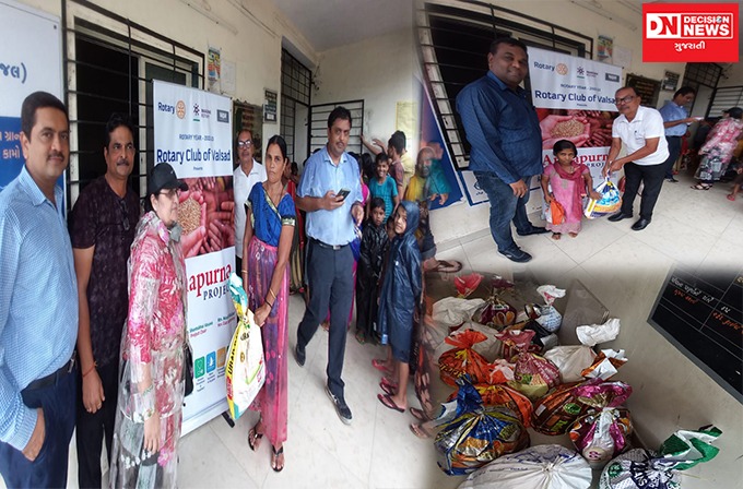 વલસાડ: આજે તારીખ 14 જુલાઇ 2022 ના રોજ રોટરી ક્લબ વલસાડ દ્વારા વલસાડ તાલુકાના વેજલપુર ગામે અન્નપૂર્ણા યોજનાનું આયોજન કરવામાં આવેલ હતું. જેમાં અત્યંત જરૂરિયાતમંદ એવા 25 કુટુંબોને એક મહિનો ચાલે એવી રાશન સામગ્રી કે જેમાં તેલ, ઘઉંનો લોટ, ચોખા, તુવેર દાળ, મીઠું મસાલા વિગેરે વહેંચવામાં આવી હતી.
