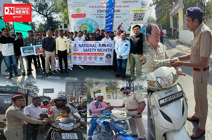 Decision News ને મળેલી માહિતી મુજબ રોજ સરકારી પોલીટેકનિક વલસાડ, આરટીઓ વલસાડ તેમજ ટ્રાફિક પોલીસ ઓફિસ વલસાડના સંયુક્ત ઉપક્રમે વાહનચાલકોને વલસાડ શહેર ના અલગ અલગ સ્થળો જેવા કે હાલર ચાર રસ્તા, ધરમુર ચોકડી, એસપી ઓફિસ ,આઝાદ ચોક ,કલ્યાણી બાગ ચાર રસ્તા જેવા અનેક સ્થળોએ કોલેજના વિધાર્થીઓ અને અધિકારીઓએ હાથમાં રક્ષા સૂત્ર બાંધી અને ફૂલ આપી જિલ્લામાં વાહનચાલકો ટ્રાફિકના તમામ નિયમોનું પાલન કરે એના માટે માહિતગાર કર્યા હતા.
