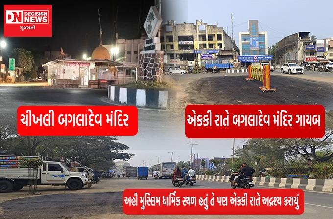 Decision News ને મળેલી જાણકારી મુજબ ચીખલી વાંસદા રાજ્ય ધોરીમાર્ગ પર રેફરલ હોસ્પિટલ પાસે ઘણાં વર્ષથી મુસ્લિમ ધર્મનું ધાર્મિક દબાણ અને ત્યાંથી થોડી આગળ થાલા બગલાદેવ સર્કલ સ્થિત બગલાદેવ મંદિરનું દબાણ દૂર કરવા છેલ્લા. ઘણાં વર્ષથી પ્રાંત, મામલતદાર અને માર્ગ મકાનના અધિકારીઓ દ્વારા હિન્દુ – મુસ્લિમ સમાજના આગેવાનો સાથે બેઠક યોજી પ્રયત્નો કરવામાં આવી રહ્યા હતા. દરમિયાન ગુરુવારના રોજ થાલા સ્થિત બગલાદેવ મંદિરનો શેડ હિન્દુ સમાજના આગેવાનો દ્વારા સ્વેચ્છાએ ઉતારી લઈ દબાણ દૂર કરવાની પહેલ કરી હતી. આ દરમિયાન લોકો પણ મોટી સંખ્યામાં એકત્ર થઈ ગયા હતા અને કોઈ અનિચ્છીય બનાવ ન બને તે માટે પોલીસ બંદોબસ્ત પણ ગોઠવાયો હતો. જોકે હિન્દુ સમાજના લોકોમાં મંદિર સાથે રેફરલ હોસ્પિટલ પાસેનું અન્ય ધાર્મિક દબાણ પણ તંત્ર દ્વારા દૂર કરી નાખવામાં આવે તેવી પ્રબળ માંગ ઉઠી હતી. બગલાદેવ મંદિર વિધિવિધાન સાથે મૂર્તિઓ ખેસેડવાની પણ તજવીજ હાથ ધરાઈ હતી.