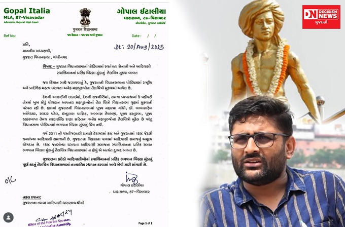 ગુજરાત: ગુજરાત વિધાનસભાનાં પોડિયમમાં ગુજરાતના કરોડો આદિવાસીઓનાં સ્વતંત્રતા સેનાની અને આદિવાસી સ્વાભિમાનનાં પ્રતિક બિરસા મુંડાનું તૈલચિત્ર મુકવા માટેની માંગ પાટીદાર નેતા ગોપાલ ઈટાલીયા દ્વારા કરવામાં આવી રહી છે