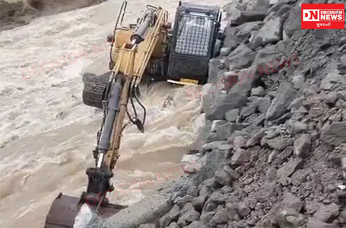 ગતરોજ આ ડાઈવર્ઝનની મરામત માટે હાઈદ્રા અને પોકલેન મશીનની મદદથી કામગીરી શરૂ કરવામાં આવી હતી. મોડી સાંજે કામગીરી દરમિયાન અચાનક પોકલેન મશીન નદીમાં પલટી ગયું હતું.