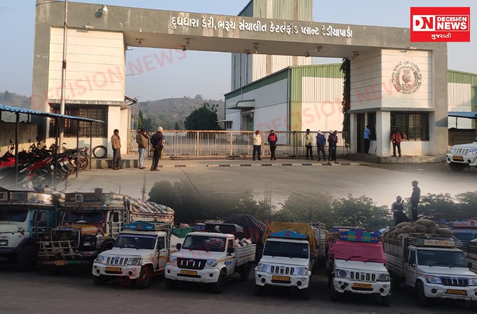 ડેડીયાપાડાના ખેડૂતો સાથે વાત કરતાં DECISION NEWS જણાવ્યું કે હાલમાં એક સરકારી-સહકારી પહેલ ખેડૂતો માટે મોટો આધાર બની છે. ભરૂચની પ્રખ્યાત દૂધધારા ડેરી દ્વારા સંચાલિત ડેડીયાપાડા કેટલફીડ પ્લાન્ટ હાલમાં ખેડૂતોને બજારભાવ કરતાં નોંધપાત્ર ઊંચો ભાવ આપી રહ્યો છે. આ પ્લાન્ટ મકાઈ અને અન્ય અનાજની સીધી ખરીદી કરે છે અને તેનો ઉપયોગ પશુઆહાર બનાવવા માટે થાય છે. આ ઊંચા ભાવના કારણે ખેડૂતોમાં આ પ્લાન્ટ પાસે પોતાનું નામ નોંધાવવા માટે અસાધારણ ઉત્સાહ જોવા મળી રહ્યો છે. દરરોજ મધરાતે 12 વાગ્યાથી જ ટ્રેક્ટર, ટ્રક અને બળદગાડાંઓની કિલોમીટરો લાંબી લાઈન લાગી જાય છે. કેટલાક ખેડૂતો તો રાતના 10 વાગ્યાથી જ પોતાના વાહનો લઈને આવી જાય છે જેથી સવારે નામ નોંધાવવાનો વારો મળી જાય. “અહીંયા બજાર કરતાં 400-500 રૂપિયા વધુ મળે છે એટલે રાતે લાઈન લગાવીએ છીએ. નહીં તો વેપારીઓ નીચા ભાવે લઈ લે છે,”