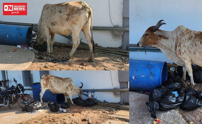ગાયને જ્યાં માતા માનવામાં આવે છે, રાષ્ટ્રીય કક્ષાનો દરજ્જો માગવામાં આવે છે પણ જ્યારે તેની દયનીય સ્થિતિ જોવા મળે છે ત્યારે સહુના મન દુભાય છે. ત્યારે શું હોસ્પિટલ વેસ્ટ કચરાનો યોગ્ય વર્ગીકરણ કરીને સુરક્ષિત રીતે નિકાલ કરવો ફરજિયાત છે. આ વેસ્ટને ખુલ્લામાં કે સામાન્ય કચરા સાથે મિશ્ર કરીને ફેંકી શકાય નહીં હોસ્પિટલ દ્વારા જાહેર સ્થળ પર ખુલ્લું ડ્રમ મૂકીને તેમાં પ્લાસ્ટિક બેગમાં સંગ્રહ કરેલો વેસ્ટ ખુલ્લામાં નાખવામાં આવ્યો હોય તેવું જોવા જણાઈ રહ્યું છે, જે આ નિયમોનું સીધું ઉલ્લંઘન છે. આ કૃત્ય માત્ર કાયદાનું ઉલ્લંઘન નથી, પરંતુ તે હોસ્પિટલની સંવેદનહીનતા અને વહીવટી તંત્રની નિષ્ક્રિયતા દર્શાવે છે.