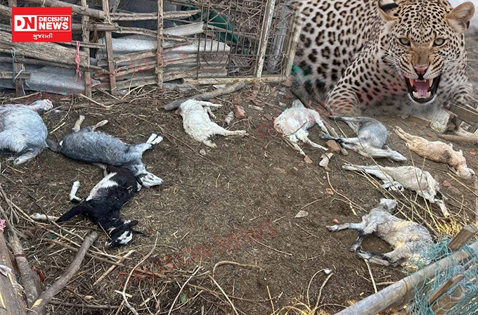 Decision News ને મળતી માહિતી મુજબ, વણગામના પશુપાલક સુરેશભાઈ જોગી આહિરના વાડામાં દીપડો ઘૂસી ગયો હતો. રાત્રિના અંધકારનો લાભ લઈ દીપડાએ વાડામાં બાંધેલા પશુઓ પર હુમલો કર્યો હતો. સવારે સુરેશભાઈએ વાડામાં જઈને જોયું ત્યારે 10 બકરા બકરીઓના મૃતદેહ લોહીલુહાણ હાલતમાં પડ્યા હતા, જેને જોઈને તેઓ સ્તબ્ધ થઈ ગયા હતા. આ ઘટનાની જાણ થતાં જ ગામમાં ચકચાર મચી ગઈ હતી અને સ્થાનિકોના ટોળા ઉમટી પડ્યાં હતાં. વન વિભાગને જાણ કરાતા ફોરેસ્ટર ભાવિનભાઈ તેમની ટીમ સાથે તાત્કાલિક ઘટનાસ્થળે પહોંચ્યા હતા. તેમણે મૃત પશુઓનું પંચનામું કરી આગળની કાર્યવાહી હાથ ધરી છે.