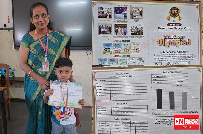 વલસાડ: ખેરગામના ૫ વર્ષના નિદિવ નિરવ પટેલે નેશનલ ટેલેન્ટ ઓલિમ્પિયાડમાં ચિત્રકામ વિષયમાં રાષ્ટ્રીય કક્ષાએ અસાધારણ પ્રદર્શન કરીને ગોલ્ડ મેડલ જીતીને પોતાની શાળા અને પરિવારનું નામ રોશન કર્યું છે.